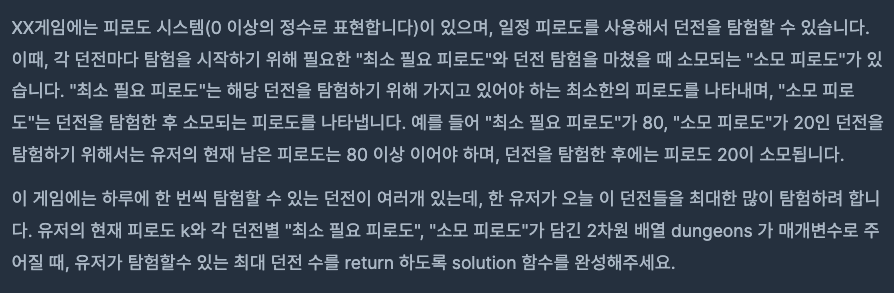 public int solution(int k, int[][] dungeons) {